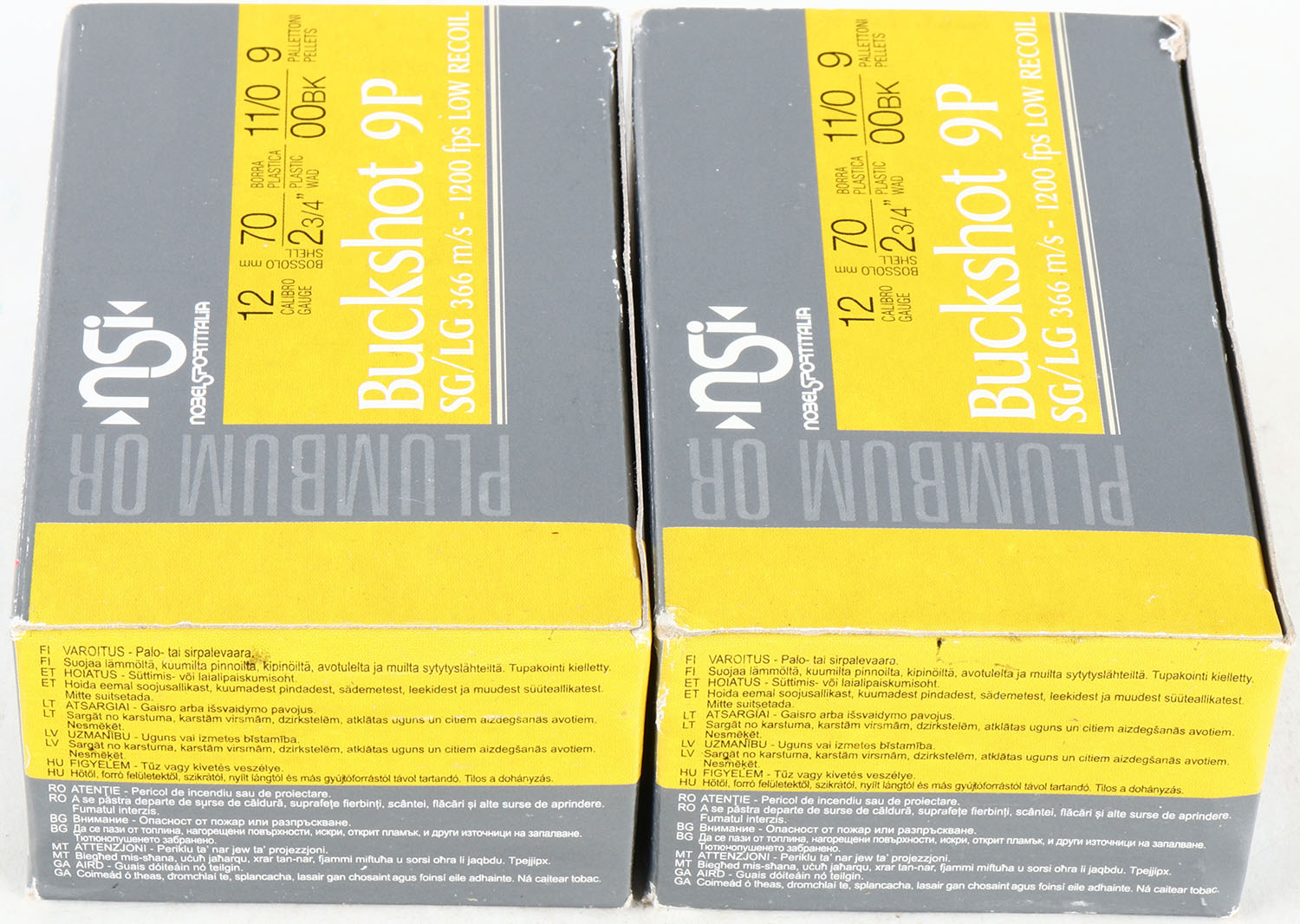 Lot of 2 NSI, 12ga., 1pc., Full, shot size buckshot, multi-colored box. Grade: MINT - Value: 10 to 30