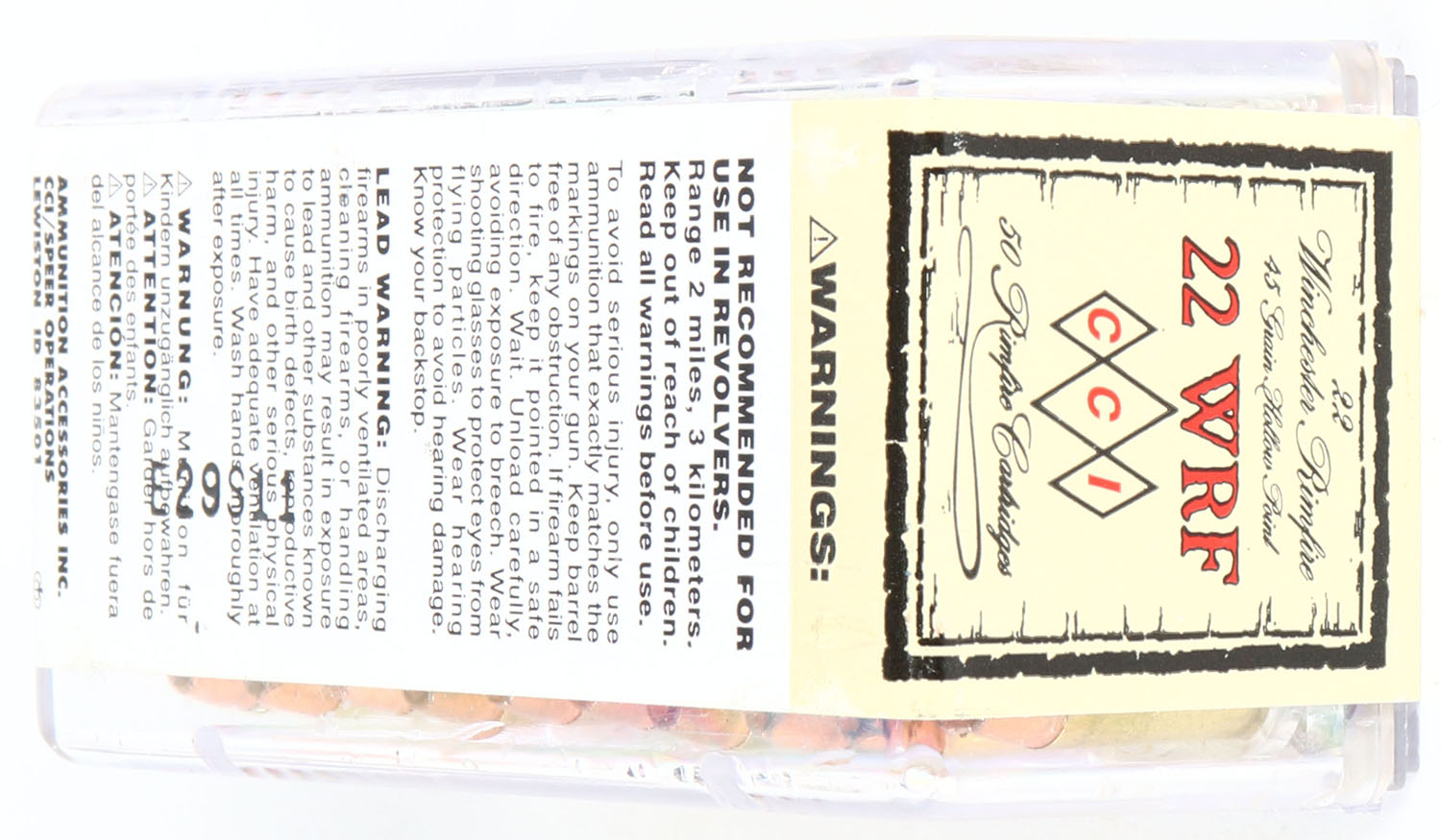 | CCi, .22 WRF Hollow Point, FULL & SEALED, 2pc. Clear plastic tr...