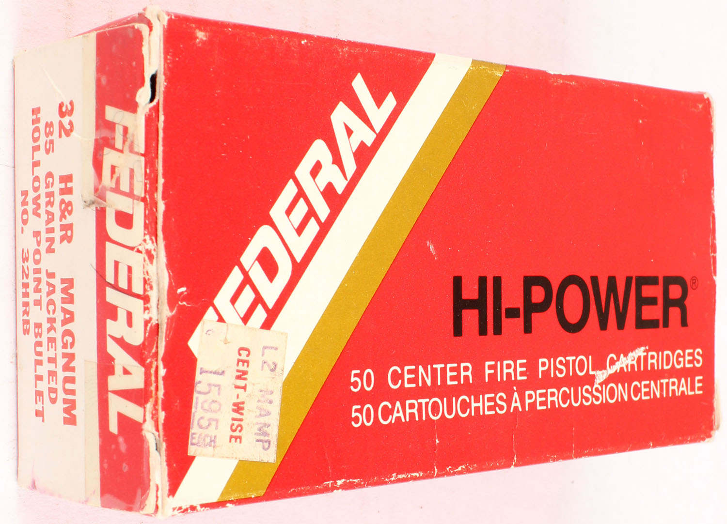Federal, Hi-Power, 32 H&R Magnum, 85 Grain Jacketed Hollow Point Bullet, Full, 1pc., red, white & black box, box is solid with very good color, corner & edge wear, light shelf wear, end flaps are solid, ammo is excellent. Grade: Very Good ++ - Value: 20 to 80