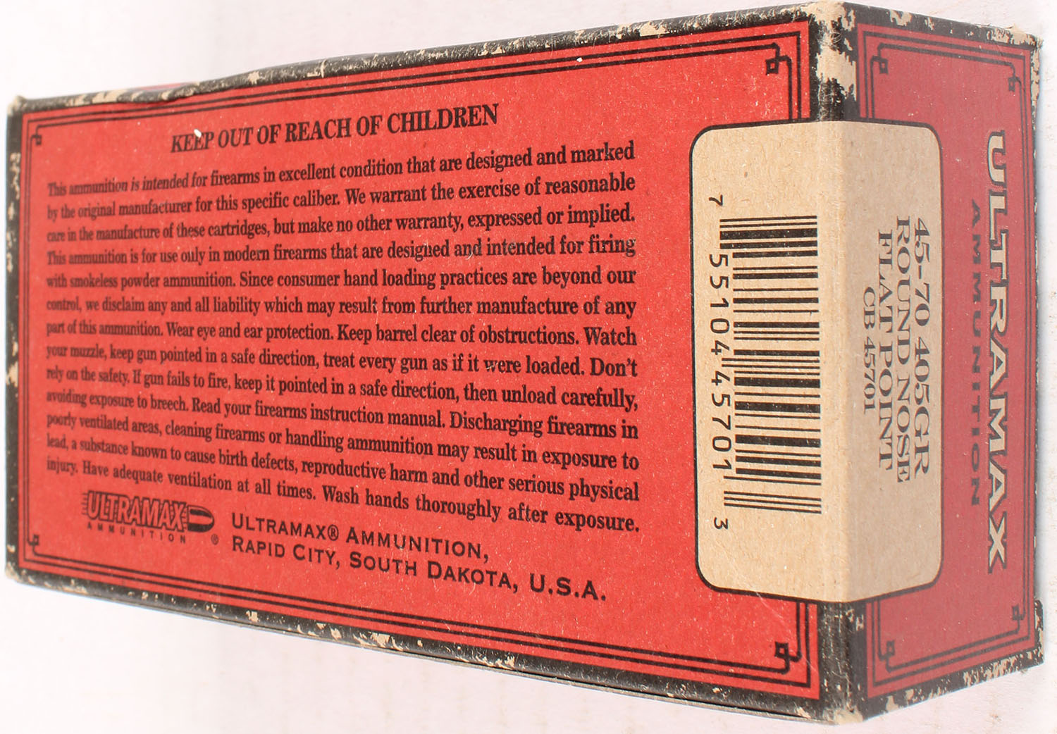 Ultramax 45-70 405 gr. RNFP, Full, 1pc. multi-colored box, box is bright and clean, Ammo is excellent. Grade: Excellent - Value: 20 to 80