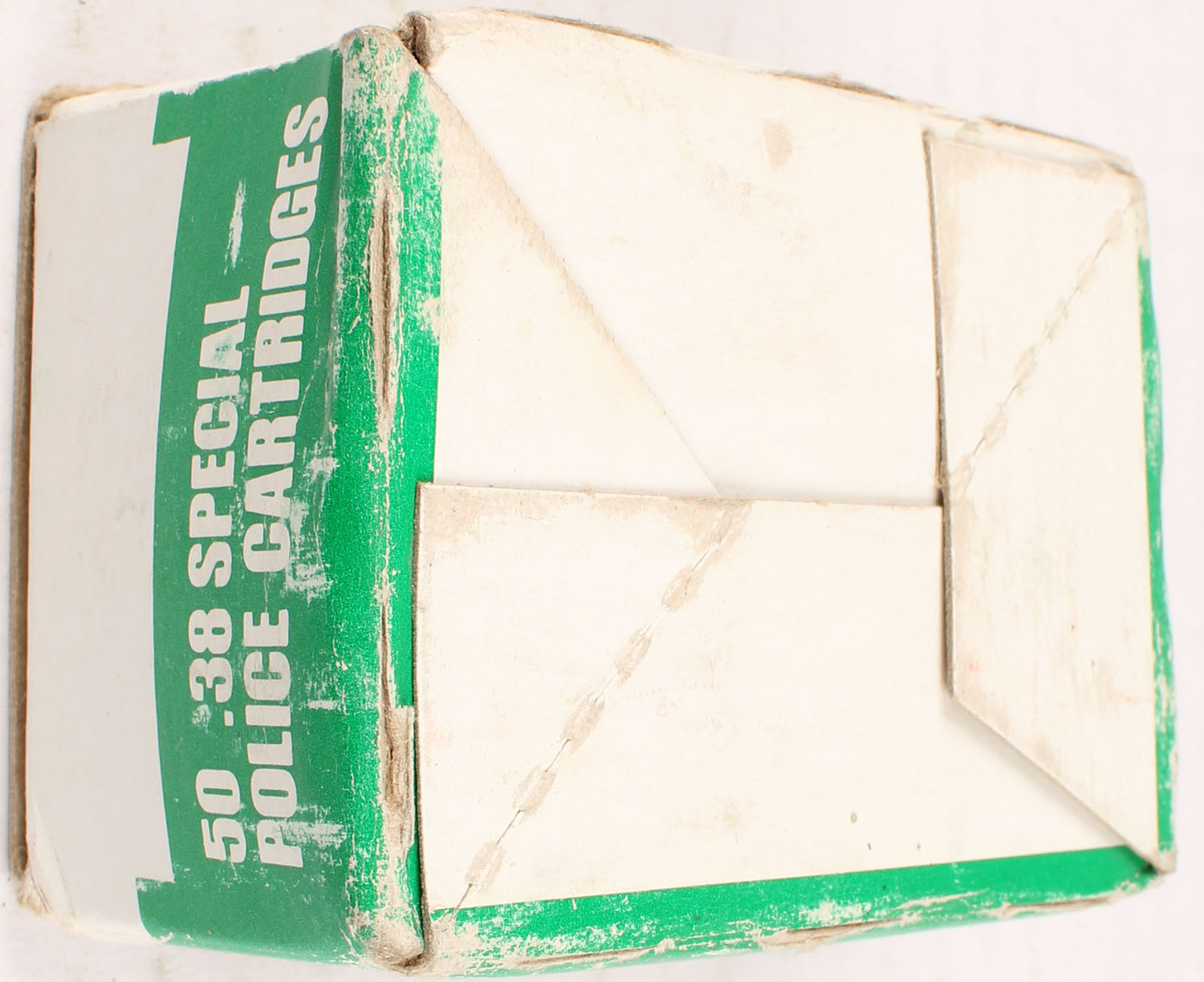 3-d .38 special, Police carts., 1pc., FULL, box has scuffing, Ammo is excellent. Grade: Excellent - Value: 10 to 50