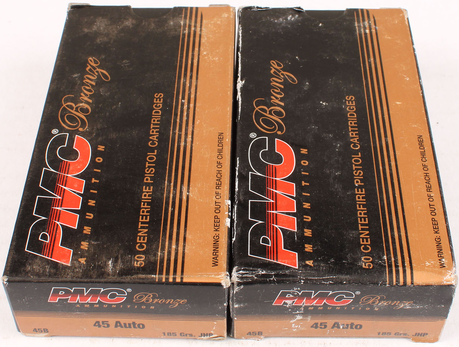 Lot of 2 PMC Bronze, .45 auto, 230 Gr., 1pc, Full, box is solid, ammo is excellent. Grade: Excellent - Value: 20 to 60