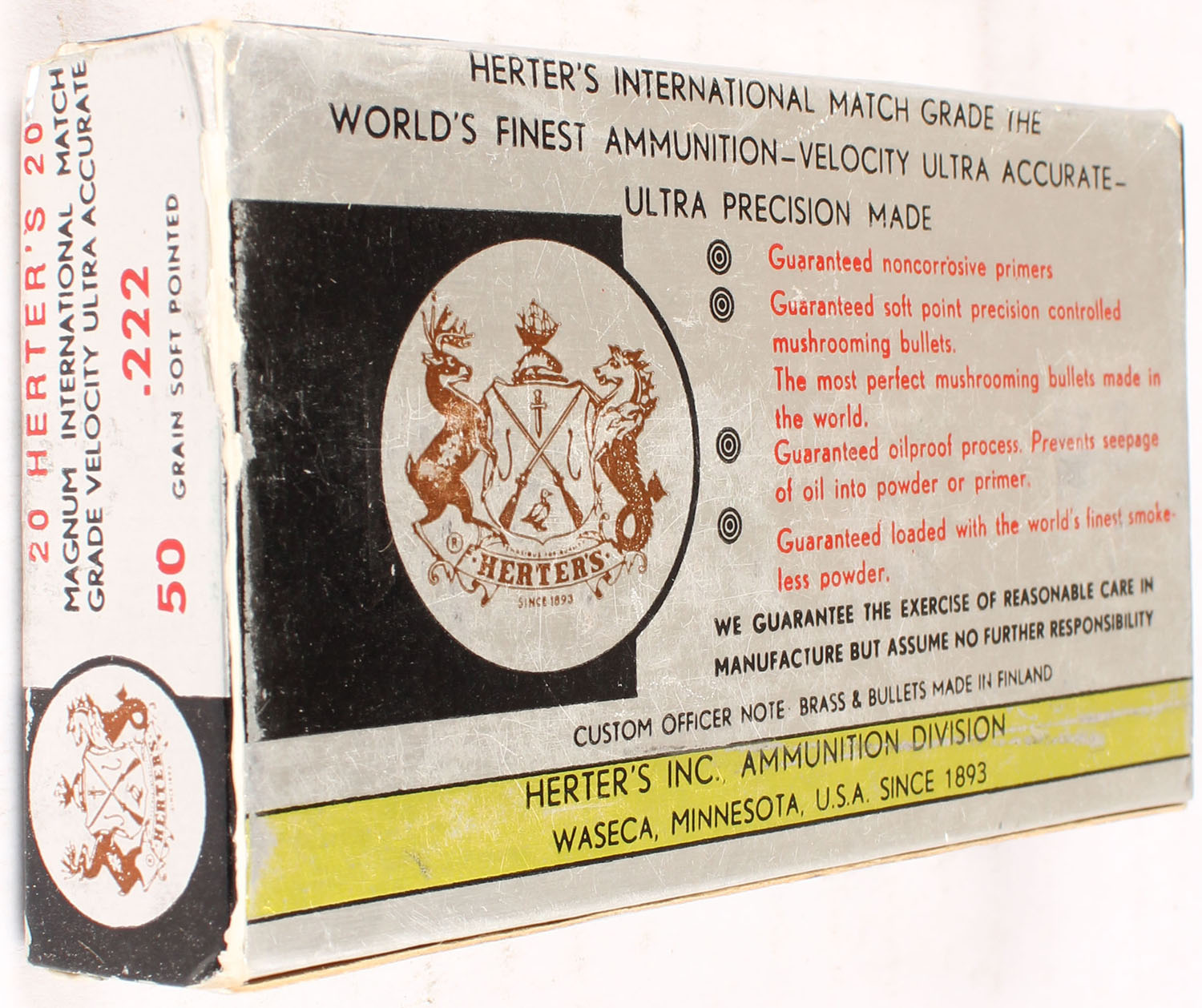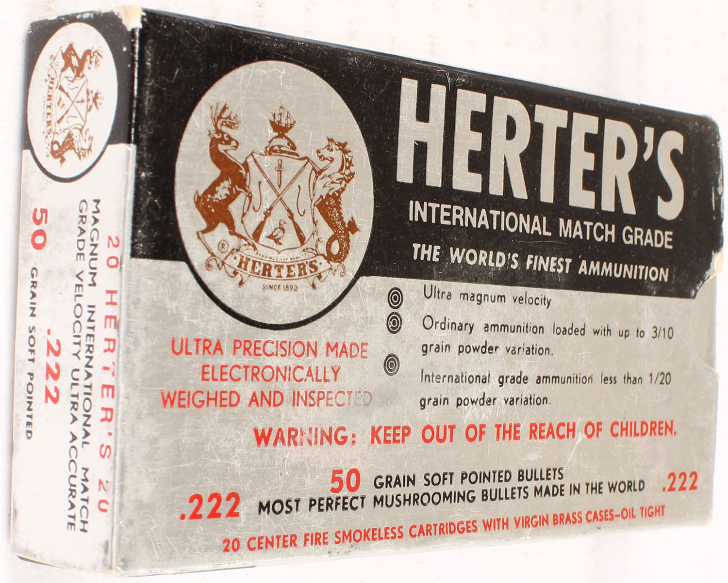 | Herters, .222 cal., FULL, both solid, ammo is excellent. Grade: ...