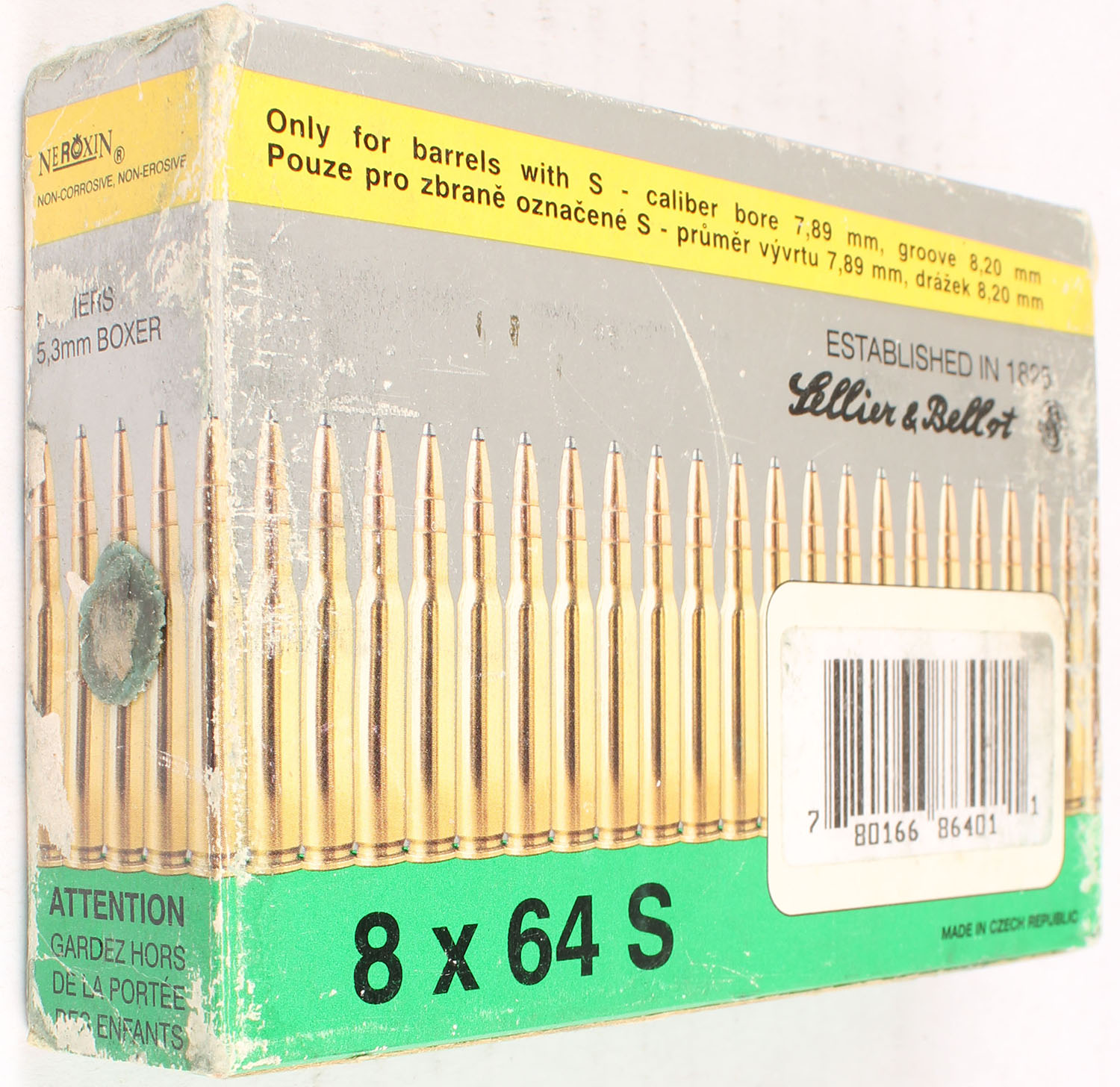 | Sellier & Bellot, 8 x 64 S, FULL, has scuffing, ammo is very go...