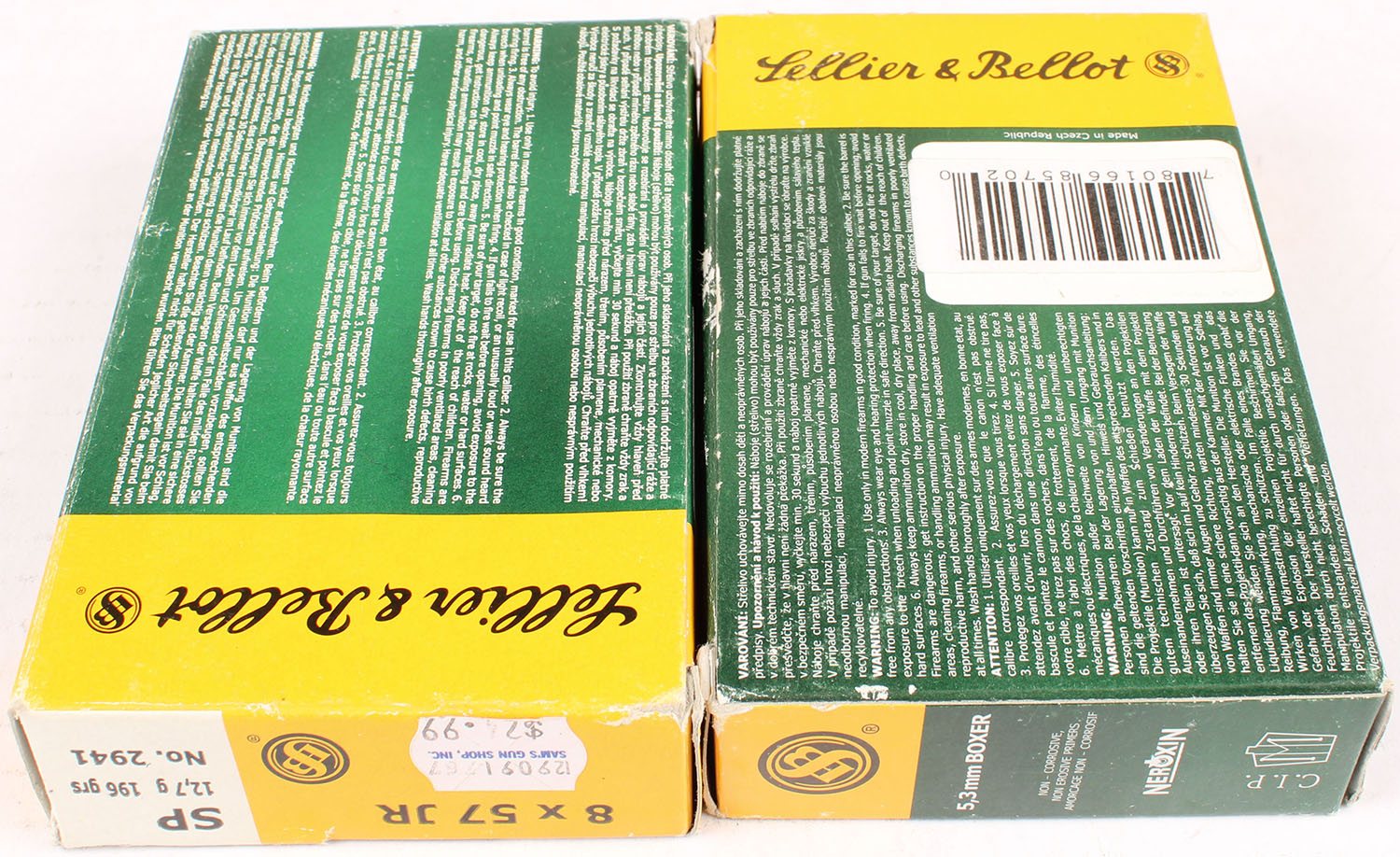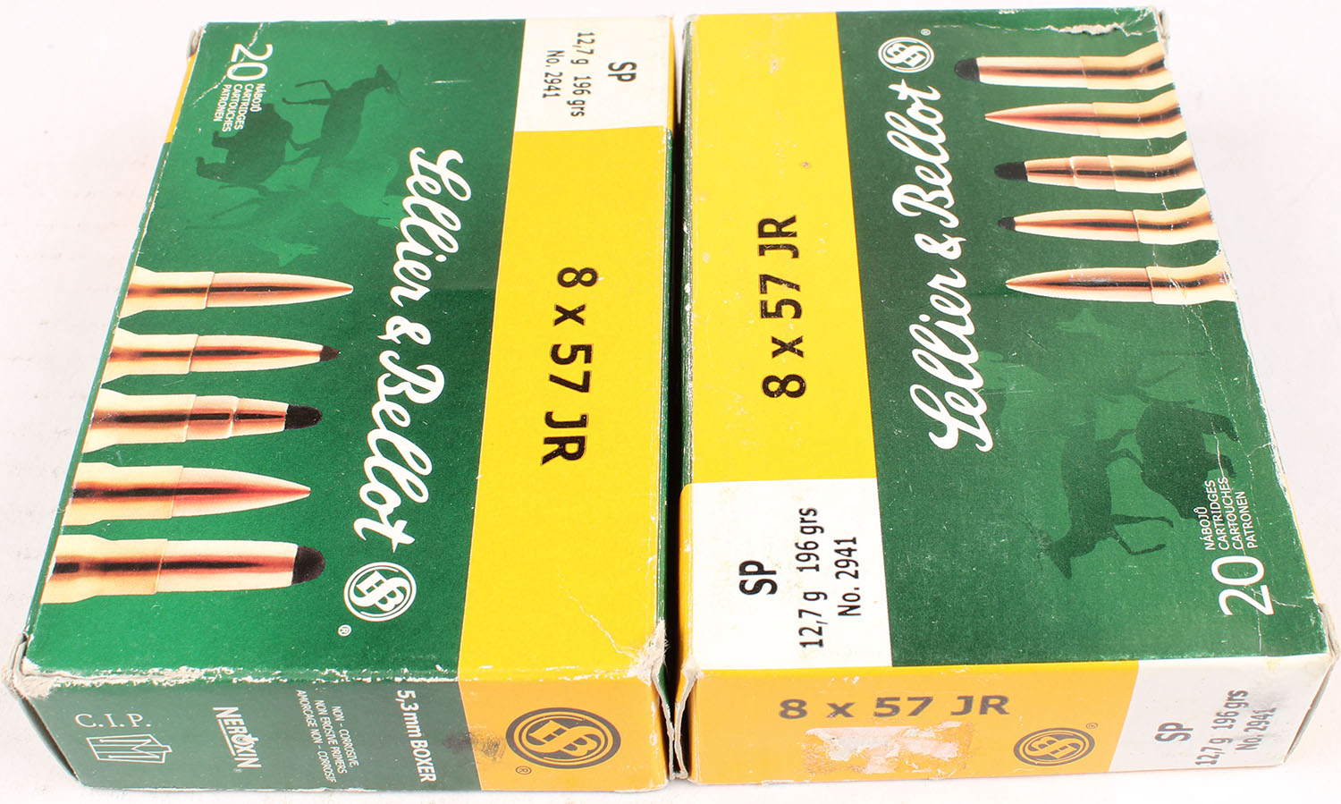 Lot of 2 Sellier & Bellot, 8 x57 JR, FULL, has scuffing, ammo is very good. Grade: Excellent - Value: 16 to 60