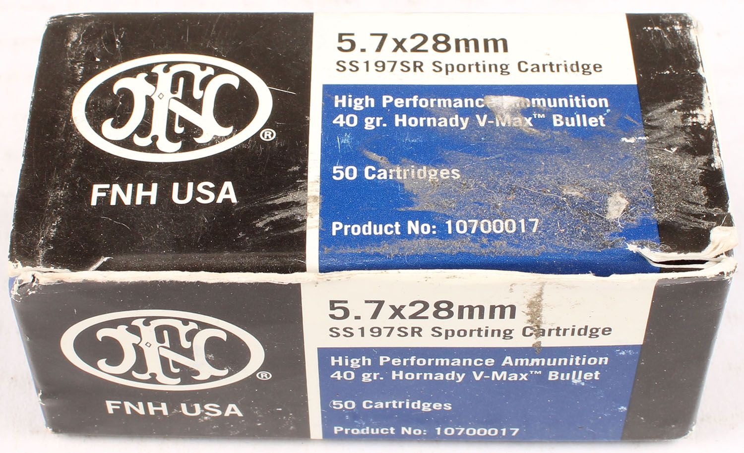 FN 5.7 x 28, Full, 1pc., box is solid, with excellent color, Ammo is excellent. Grade: Excellent - Value: 10 to 50