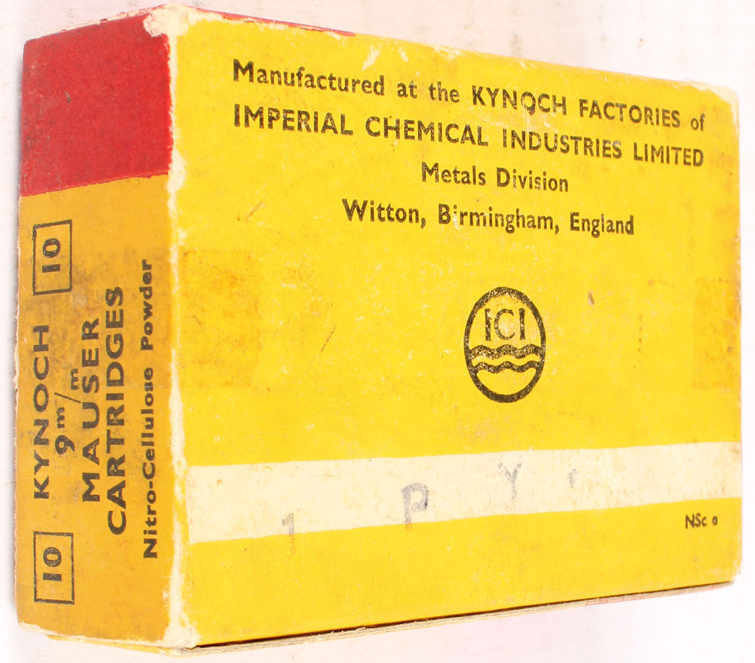 Kynoch, 9 m/m, 245 Grains, Full, 1pc. Multi-colored box, box has age soiling, Ammo is excellent. Grade: Excellent - Value: 16 to 60