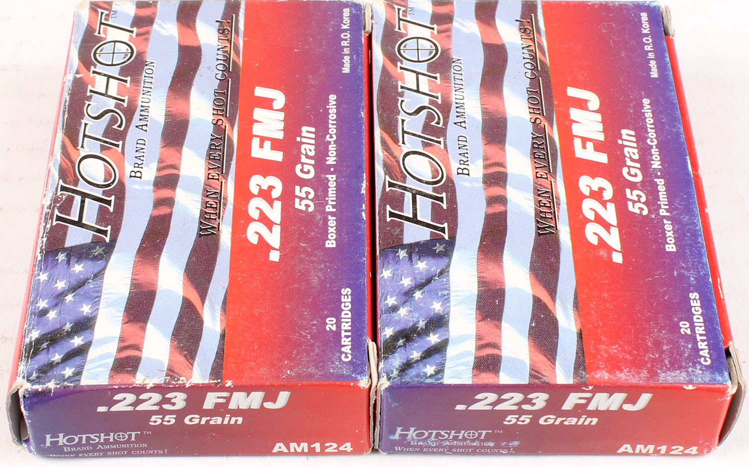 Hotshot .223 FMJ, FULL, ammo is excellent. Grade: Excellent - Value: 6 to 40