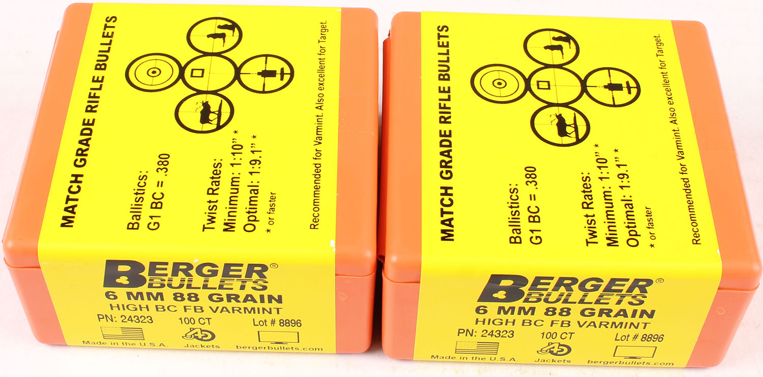 | Berger, Lot of (2), 6mm, 88 Grain High BC FB Varmint, Match Grad...
