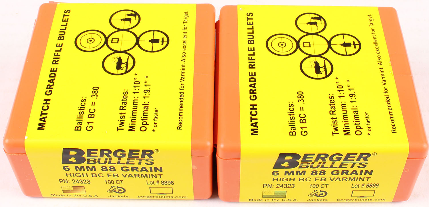 | Berger, Lot of (2), 6mm, 88 Grain High BC FB Varmint, Match Grad...