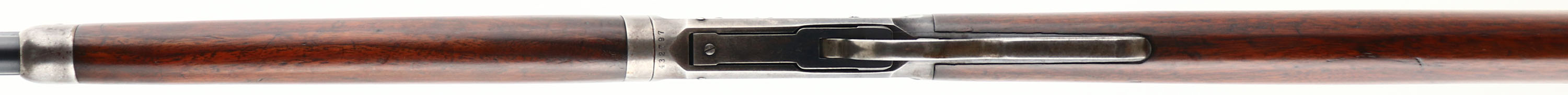 Winchester, Model 1894 TAKE-DOWN, CAL: 38-55, MFG: 1909, SN: 432797, Lever Action Rifle, 26'' Octagon barrel, Full mag. The original wood stocks are excellent, with a several minor handling marks, scuffs & contusions to the original finish, which is thinning at the carry points. The original factory blue is 85% on barrel & mag tube, while the receiver displays a mix of 25% remaining blue & the rest worn to thin brown patina & gun metal gray. The case-hardened lever & hammer have worn gray, with very faint case-colors. Bore is excellent. The barrel is fitted with a factory adjustable rear & pinch blade front sights. Metal crescent buttplate. Tight smooth action. An very nice original take-down rifle. FFL or C&R Req. - Value: 2000 to 4000