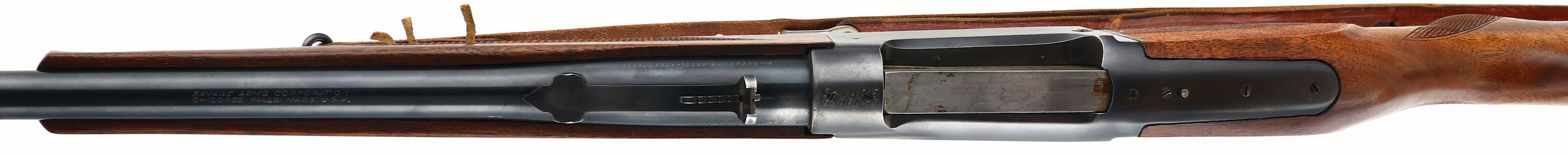 Savage, Model 99, marked 250-3000 Cal., MFG: 1950, SN: 540831, Lever Action Rifle, 24'' Tapered round barrel. The checkered & capped pistol grip wood stocks are excellent & solid. The checkering on the wrist & forend is excellent & appears original, while the checkering on the cheeks of the stock appears to have been cut at a later time & is also excellent. The finish appears original, with few handling marks. The metal finish on the barrel rates 97%, while the receiver rates 90%. The case-hardened lever displays vivid case-coloring. Barrel fitted with an adjustable rear & tall blade front sights. Top of the receiver has been tapped & drilled, with four added screws for scope mounting. Bore is excellent. The stock carries the original Savage serrated metal buttplate. Sling studs with period leather sling. Action is smooth & tight. Excellent overall condition & collectable. FFL or C&R Req. - Value: 800 to 1500