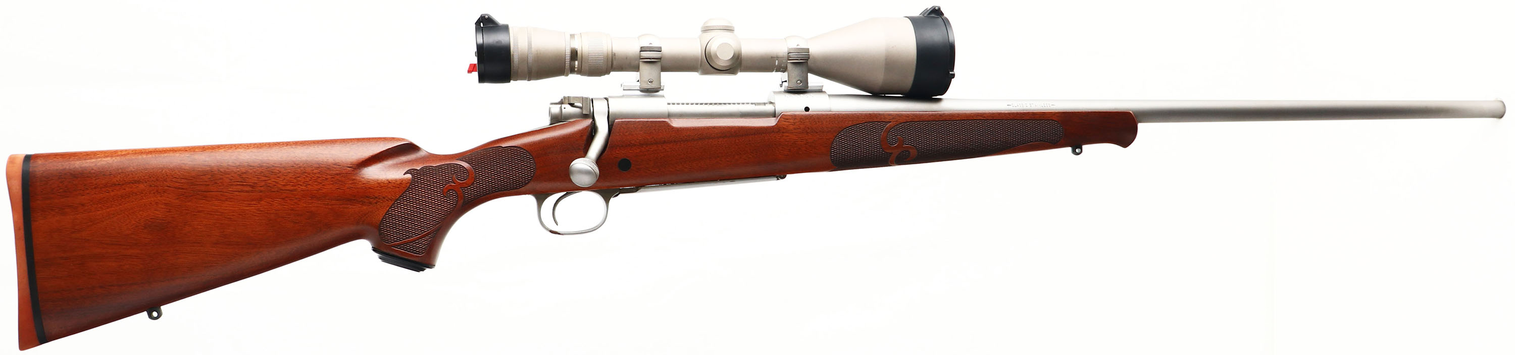 Winchester, Model 70 Classic Stainless, CAL: 300 WIN MAG, MFG: 1993, SN: G43635, Bolt Action Rifle, 24'' tapered round barrel. The factory checkered & flat pistol walnut stock is excellent, with sharp checkering. Stock features a black pistol grip cap & Schnabel forend. There are very few tiny handling marks to the original finish. The stainless metal finish is excellent. Bore is excellent. The rifle is fitted with a Redfield 5 Star 3x-9x scope, while the barrel has no open sight provisions. The buttstock carries a Winchester recoil pad. Sling studs. An overall excellent & original Classic Stainless. FFL Req. - Value: 500 to 1000