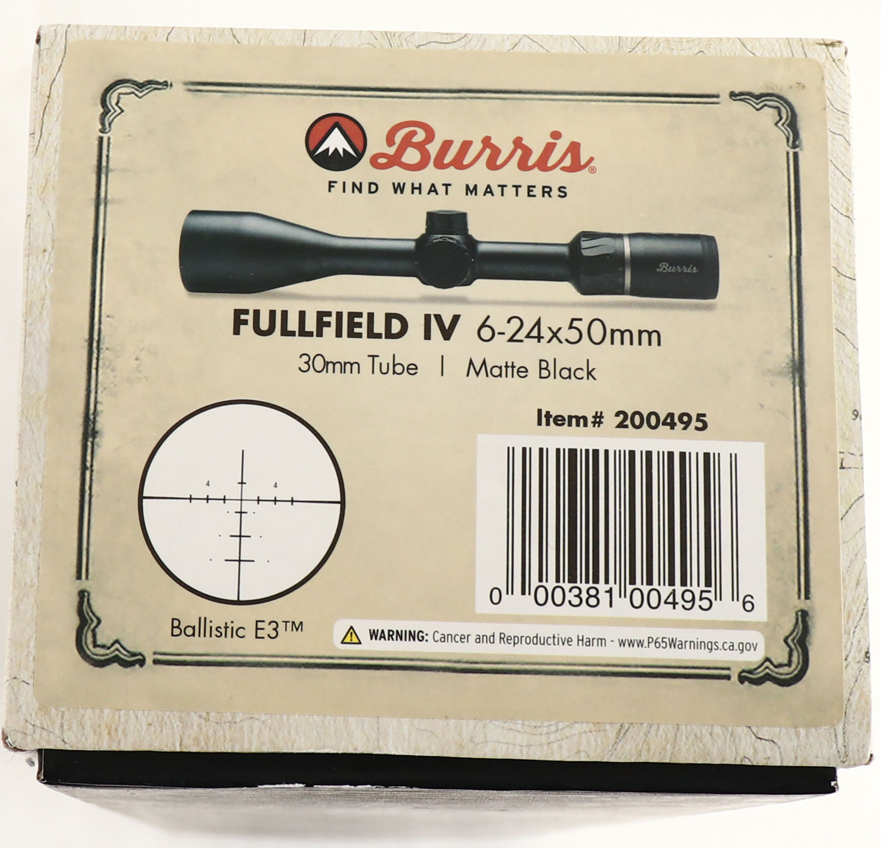Weatherby, Vanguard, CAL: .270, MFG: Modern (2006-09), SN: VS163572, Bolt Action Rifle, 24'' barrel. The original cheeked, checkered & flat pistol grip Monte Carlo stock, with rosewood forend cap, is excellent. There are almost no handling marks to the original satin finish. The original metal blue finish rates 99%+ overall. Bore is excellent. The rifle is fitted with a Burris Fullfield IV 6-24x50mm scope, with. no open sight provisions. The stock carries the original Weatherby solid recoil pad. The rifle carries a NRA basketweave leather sling in factory sling studs. Comes with the original box sticker, owner's manual & factory test-fire target, along with the original scope box. FFL Req. - Value: 800 to 1200