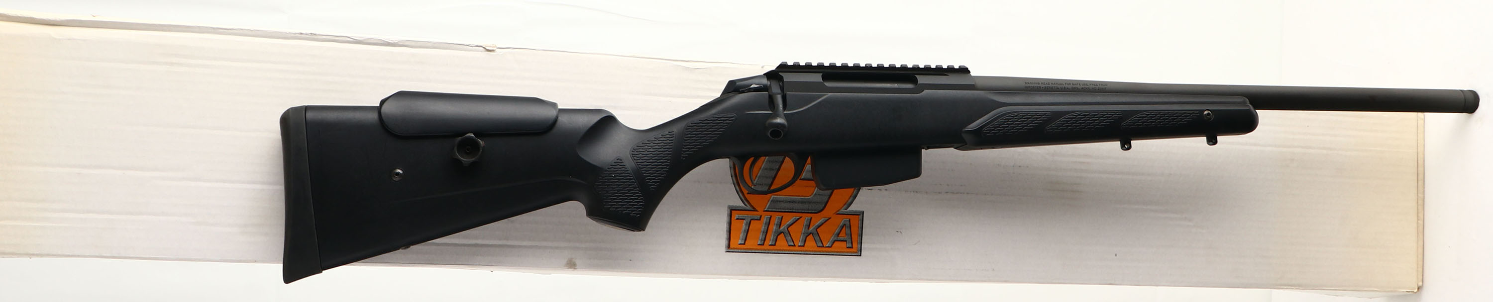 BOXED Tikka, Model: T3 Tact, CAL: 308 WIN, MFG: Modern, S/N: 770578, Bolt-action, 20'' Round barrel. Made by Sako of Finland & imported by Beretta USA. The Tikka T3 Tactical was developed in 2004 as a target rifle of medium price range that can be used by both civilians and law enforcement. The National Rifle Association awarded the Tikka T3 Tactical the weapon of the year award in 2007. The original capped pistol grip synthetic stock is excellent. Featuring an adjustable comb/cheek rest & with textured grips, which is interchangeable with custom order accessories. The original metal black finish rates 99%, with a couple of handling nicks from being displayed. The left side of receiver is marked ''TIKKA T3'' & S/N. Left of barrel is marked ''CAL. 308 WIN'' &'' MADE IN FINLAND'', right side marked with warnings. Bore is excellent. Capped threaded barrel for possible muzzle break or suppressor installation. Receiver carries a picatinny rail, with no open sight provisions. Has two detachable box magazine, Factory rubber recoil pad. Sling studs. Nearly new old stock, as came from gun shop where it was the display model until put away in box & taken home by owner. Comes in original box, with packaging & lock. FFL Req. - Value: 600 to 1000