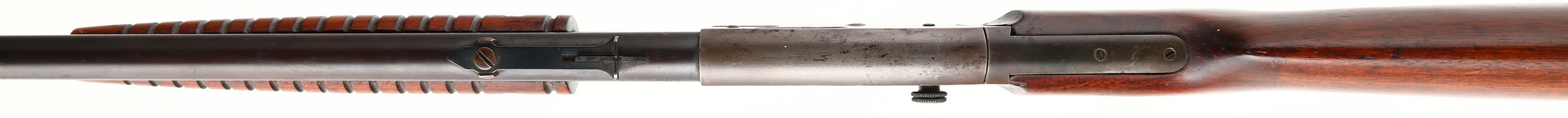 Ranger (Savage), Model Pump Action (29A or 29B), .22 S.L.LR., MFG. 1950's, SN:148789, Pump Rifle, 24'' Round barrel. The flat pistol grip wood stocks are very good & solid, with numerous minor scratches, nick & contusions to the finish. The original metal blue finish on the barrel is starting to tone a bit plum gray/brown, with coverage remaining at 50% & lots of spotty areas of rust pitting. The receiver & mag have 30% coverage of a brown patina, with spotty rust pitting. Barrel carries standard front & adjustable rear sights. Bore is fair, with pitting & scarring to thin rifling. Lots of Rust pitting on metal buttplate. FFL or C&R Req. - Value: 150 to 300