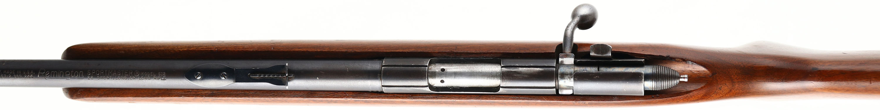 Remington, Model 512 Sportsmaster, .22 S, L, LR Cal., MFG. 1940-62, SN: None, Bolt Action Rifle, 25'' round barrel, The original wood stock is excellent, but does have small scrapes, scratches & minor contusions to the original finish. The original metal blue finish is 85% original on barrel & mag, 60% on the receiver, with some speckling to the metal. Original sights. Bore is excellent. Remington checkered plastic buttplate. FFL or C&R Req. - Value: 150 to 300