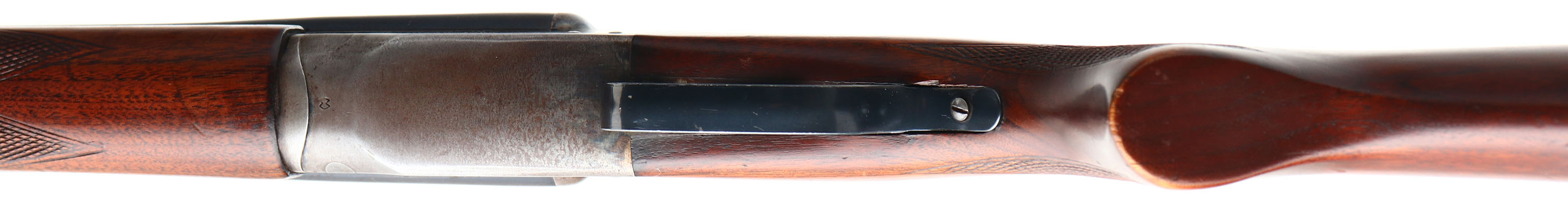Stevens (Savage), Model 5100, CAL: 20 GA, MFG: 1941-48, SN: NSN, Break Action SxS Shotgun, 28'' barrel. The checkered flat pistol grip stocks are excellent. There are contusions, scrapes & dings. The metal blue finish on the barrels rates 50% & the case-hardened receiver has worn to a mix of metal gray & brown patina, with remnants of case-colors in protected areas. There's a simple engraving of a dog on the left side of the receiver. Bores are excellent. The barrel holds a small steel mid rib bead & a steel front bead. Stock has a grooved plastic buttplate. According to John Callahan, Arms Historian for Savage Arms, guns stamped 5100 were made by the J. Stevens Arms Division of Savage from 1941 to 48. Appx 50,000 were made in that time frame. He indicated that the shotgun is basically a 311 & the 5100 stamp indicates a change in frame design to distinguish between the old & new designs. FFL or C&R Req. - Value: 200 to 400