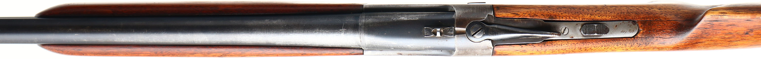 Ranger, Model 103-1, CAL: 12 GA, MFG: 1930's, SN: 2775, Break Action O/U Shotgun, 30'' barrels. The flat pistol grip & cheeked wood stocks are good, having been repaired, sanded & refinished. The belly of the stock split & has two screws/bolts holding it together. There are other contusions, scrapes & dings. The metal blue finish on the barrels rates 70%, with consistent thinning, worn to metal gray & thin brown patina. The receiver has worn to a mix of metal gray & brown patina. Bores are excellent, with visible striations. The barrel has a rear peep sight & blade front sight. Stock has a grooved black rubber buttplate that's worn. The Marlin Model 90, sold to Sears Roebuck were marked Ranger with a specific designation for each of the different gauges. The first Ranger's came out in 1936, and after WW II, (1945) the name was changed to J.C. Higgins. FFL or C&R Req. - Value: 200 to 400