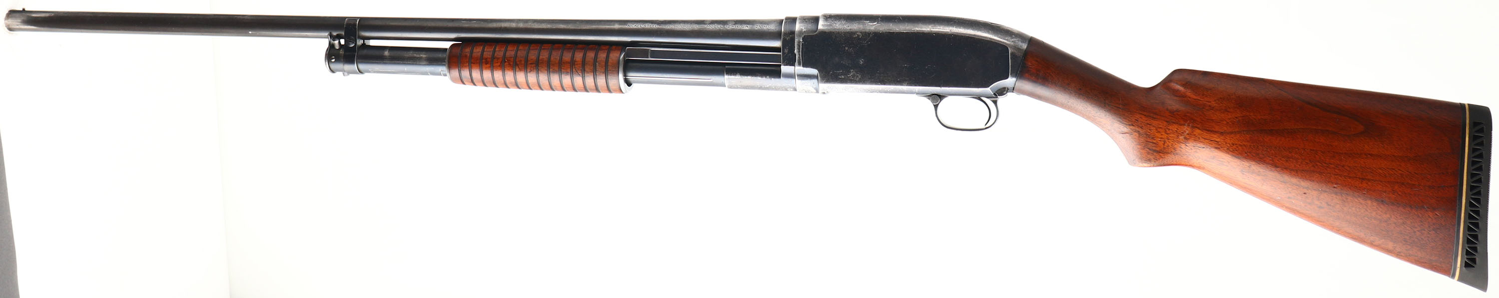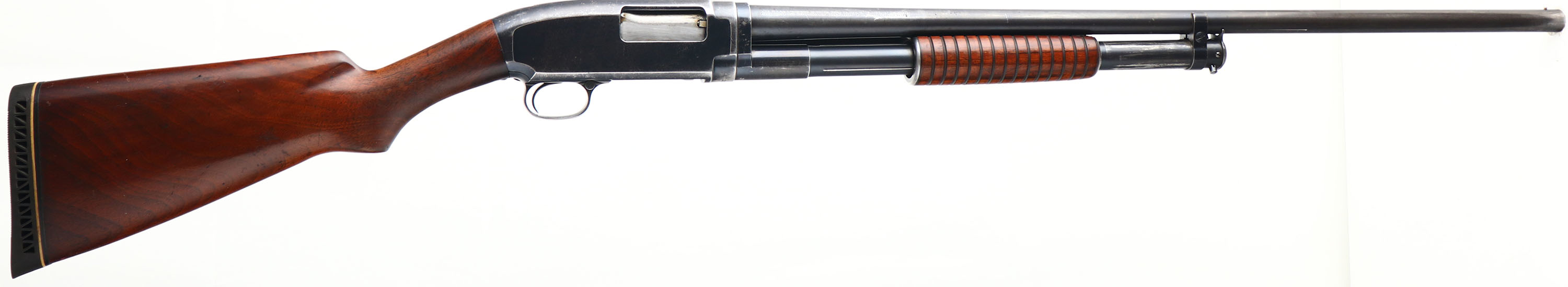 Winchester, Model 12, CAL: 16 GA, MFG: 1924, SN: 398025, Pump Action Shotgun, Choke: MOD, 2 3/4'' Chamber, 30'' Barrel. The original flat pistol grip wood stock & corncob forend are very good & solid. The stocks display minor scrapes, dings, scratches & some thinning to the original finish. The original metal blue finish remains at 50% overall. Bore is excellent. Single front bead. Buttstock carries a Pachmayr ventilated recoil pad, with 13.5'' LOP. FFL or C&R Req. - Value: 400 to 800