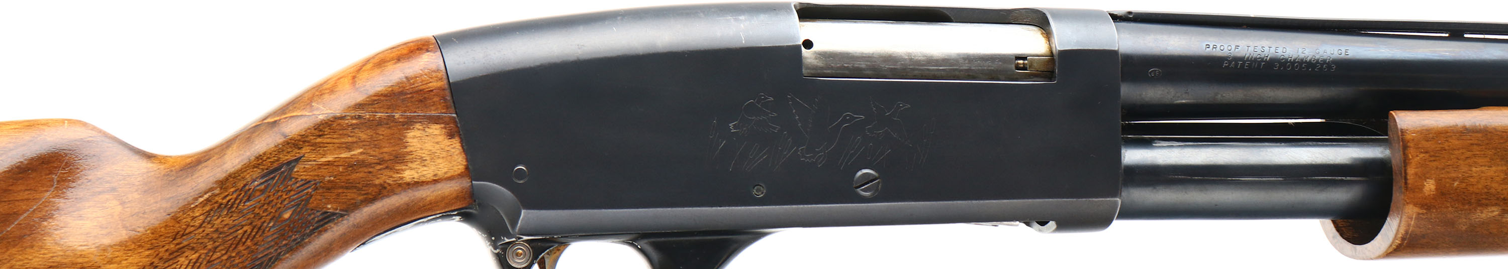 Coast to Coast, Model 367, CAL: 12 GA, MFG: 1960's, SN: 583.200, Pump Action Shotgun, 3'' chamber, Choke: IC+, 19 1/2'' cutoff barrel. Made for Coast to Coast by Savage as a copy of their own Model 30. The original flat pistol grip wood stock & finger grooved forearm are good & solid, despite a large glue repair at the top of wrist behind the receiver. The stocks display an added layer of finish over the original finish. There are small surface scrapes, scratches & contusions, along with some flaking of the original finish under the current finish. The original metal blue finishes rate 90% overall, with numerous scrapes on the Japan black on the trigger guard to about 50%. Bore is excellent. The barrel holds a single mid bead with no front bead. Buttstock carries a period recoil pad. Sling studs. This would make great short barrel home defense pump action shotgun. FFL or C&R Req. - Value: 150 to 300