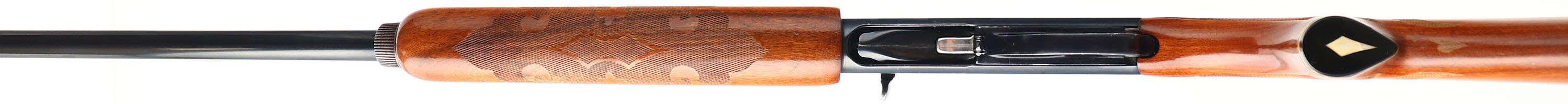 Remington, Model 1100 MAGNUM, CAL: 12 GA, MFG: Modern, SN: L049636M, Semi Auto Shotgun, Choke: Full, 3'' Chamber, 30'' Ventilated rib barrel. The original checkered & capped pistol grip wood stocks are very good, displaying small handling marks to the original finish. There is a 1/4''X1'' chunk of wood missing from the left side of the forend that leads to an additional 2'' crack. The metal blue finish rates 95% on barrel, 90 on receiver. Bore is excellent & bright. The rib holds a single front silver bead. Buttstock carries a Remington ventilated recoil pad. LOP 13 7/8'' over pad. A nice original condition magnum shotgun. FFL Req. - Value: 300 to 600