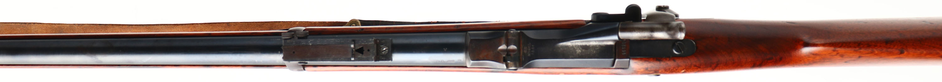 Springfield Armory, Model: 1884, Cal: 45-70, MFG: 1889, Antique, S/N: 467216, Trapdoor single shot rifle, 32 1/2'' barrel. The straight wrist wood stock is good, has light scratches & dings, stock has been sanded & a thin high gloss finish has been added, faint cartouche remains on left side of stock above trigger. The metal has been re-finished & rates 75% overall with wear & scratches. Top of breech block is marked ''U.S.'', ''MODEL'', ''1884'', rear of receiver is marked with S/N, left side of barrel is marked ''V'', ''P'', over a Eagles head, & ''P''. Bore is very good, bright & shiny with lightly thinned rifling. Chipped blade front sight with a Buffington rear sight marked 2 to 20. Steel butt plate marked ''US'' on the upper tang. Bottom sling swivels. Has cleaning rod, comes with leather sling. Antique No FFL Req. - Value: 500 to 1000