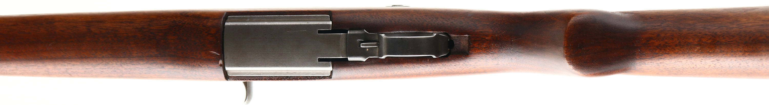 Harrington & Richardson arms, Model: M1 Garand, Cal: .30-06, MFG: 1956, S/N, 5793201, Semi-auto rifle, 24'' barrel. Harrington & Richardson ended M1 Garand production at S/N 5793847, making this rifle one of the last few hundred produced at the H&R factory. The semi-pistol grip wood stock is very good with little to minor wear, likely a after market replacement since there is no cartouches or markings on the stock, 5'' tight crack on right side of forend. The metal finish rates 85% overall with spots of light wear & light rust speckling. Top rear of receiver is marked ''U.S. Rifle'', ''CAL. .30M1'', ''H&R ARMS CO.'', & S/N, top of bolt is marked ''8394'', right side of barrel is marked ''S-A-2-51''. Bore is very good, bright & mirror like with lightly worn rifling. Barrel holds a blade front sight with protective wings, fully adjustable aperture rear sight. Checkered steel trapdoor butt plate. Bottom sling sloops with stacking swivel. M1 Garand production initially stopped in 1945 with the end of WW2 but with the advent of the Korean war production started back up at Springfield in early 1952, along with Springfield 2 more company's also started up production, International Harvester Co. in mid 1951, ended in early 1956, & Harrington & Richardson Arms Co. in early 1952, ended in early 1956. The last service M1 Garand rolled of the Springfield assembly line on may 17th 1957. FFL or C&R Req. - Value: 1200 to 2400