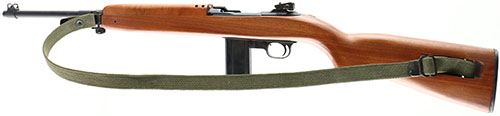 Universal, Model: M1 Carbine, Cal: .30 Carbine, MFG: 1961-72, S/N: 106430, Semi-auto rifle, 18'' barrel. The semi-pistol grip walnut stock is excellent. The blued finish rates 97% Rear of receiver is marked with S/N, front of receiver is marked ''UNIVERSAL'', ''HIALEAH, FLA.'', & Patent number. Bore is very good with minor wear from use. Blade front sight with protective wings, fully adjustable aperture rear sight. Checkered steel butt plate, side sling swivels. Has oiler bottle, comes with green canvas sling & one 15 Rd. Mag. A excellent M1 carbine replica that doesn't have all the wear & tear as the originals. FFL or C&R Req. - Value: 600 to 1200