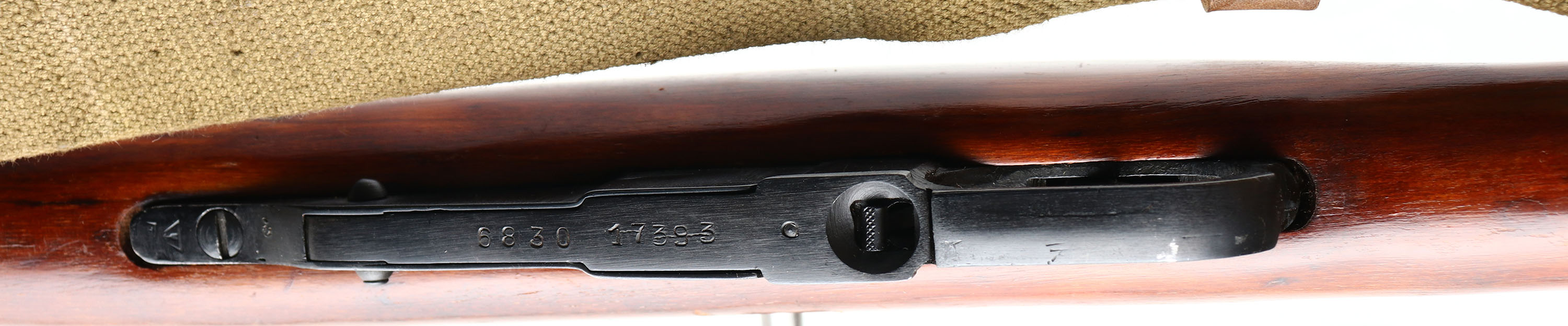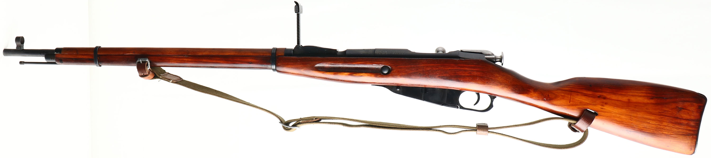 Izhevsk. Model: M91/30. Cal: 7.62x54mmR. MFG: 1942. S/N: 9130086474 (original Russian KW6830). Bolt Action Rifle. 29'' Barrel. The straight wrist wood stock is very good, has been sanded & re-finished, faint cartouches remain on right side of cheek & in right finger groove. The metal finish rates 95% overall. top of barrel is marked with Hammer & sickle in circle of wheat, ''1942'', Russian S/N, Arrow in triangle, & other proof marks. Left side of receiver is stamped with importer mark & importer S/Ns, S/N matched bolt, floor plate, & butt plate. Bore is good, beginning to darken with lightly thinned rifling. Post front sight with protective globe, U-notch Tangent Rear sight marked 1 to 20. steel butt plate with small nicks & wear, upper tang is marked with S/N. Has cleaning rod. FFL or C&R Req. - Value: 250 to 500