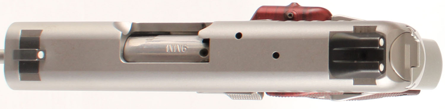 Kimber, Solo Carry STS, CAL: 9mm, MFG: Modern, SN: S1136737, Semi Auto Pistol, 2 3/4'' barrel. The Crimson Trace checkered grips are excellent. The stainless steel finish is excellent overall, with minor storage marks. Bore is excellent. Factory white dot sights. Comes in Kimber marked soft case, with extra mag. FFL Req. - Value: 400 to 600