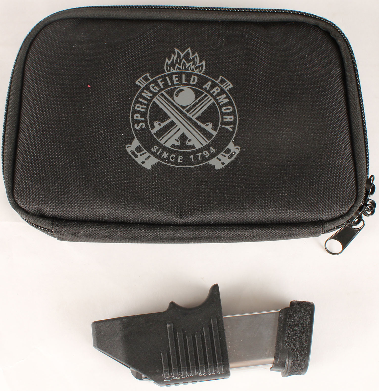 NEW, BOXED, Springfield Armory, Hellcat, CAL: 9mm, MFG: Modern, SN: BA484112, Semi Auto Pistol, 3'' barrel. The textured polymer grip frame is excellent. The matte black finish on the slide rates 99%. Bore is excellent. Factory U-Dot rear sight & photoluminescent front night sight. Optical Sight Pistol, fitted with a HEX Wasp Red Dot sight. Comes in factory box, with soft carrying case, related paperwork, lock, speed loader & extra 11 rnd mag. NIB & NOS. FFL Req. - Value: 600 to 900