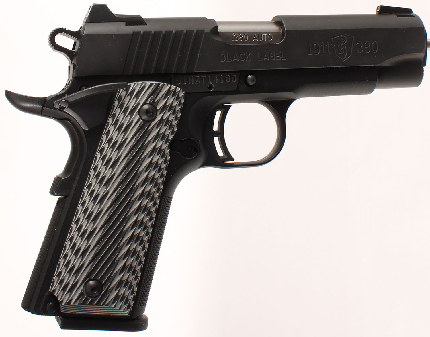 CASED, Browning 1911-380 Black Label Compact, CAL: 380 ACP, MFG: Modern, SN: 51HZT14180, Semi Auto Pistol, 3 5/8'' barrel. The serrated multi color grips are excellent. The matte finish on the frame & slide rates 99%+. Bore is excellent. Factory fixed sights. Comes in original hard case, with related paperwork & lock. FFL Req. - Value: 400 to 600