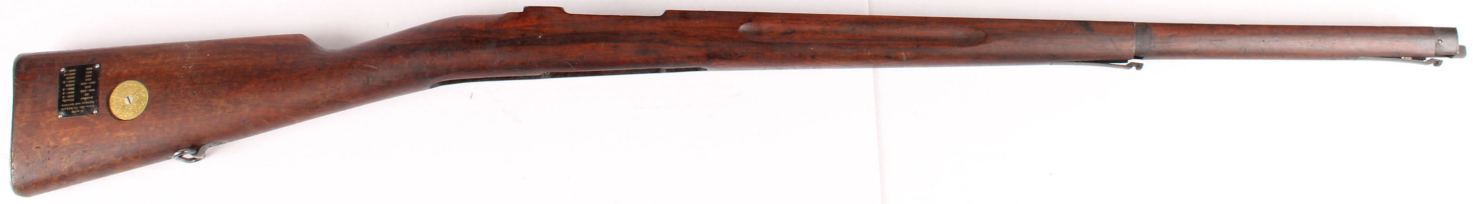 | Swedish M1896 Mauser Stock has bore disc and sight range drop pl...