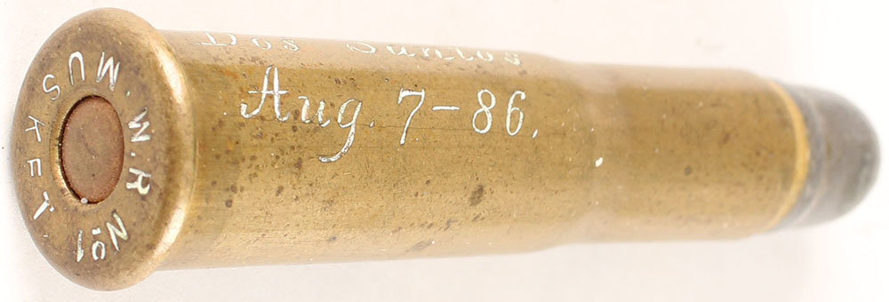 450 #1 Musket (500/450 #1). HS:''W.R No 1 MUSKET .'', RN PP Lead. Side of the case is etched ''DOS SANTOS AUG 7--86''. Unknown significance. Grade: Excellent - Value: 40 to 80