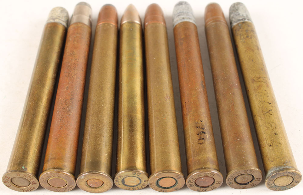 Lot of 8. 9.3x72 mm Rimmed. (2) by RWS, (2) by Stahl, (1) each by DWA, PS, Norma and Munitionfabriken Altdorf (Swiss). Various bullet loadings. Grade: Very Good ++ - Value: 60 to 120