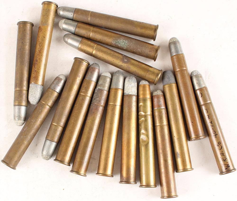 Lot of 16. 40-72 Winchester. All by Winchester. HS:''W.R.A. Co. 40-72 W.C.F.''. (13) with jacketed softnose bullets. (3) with lead bullets. Grade: Very Good + - Value: 60 to 120
