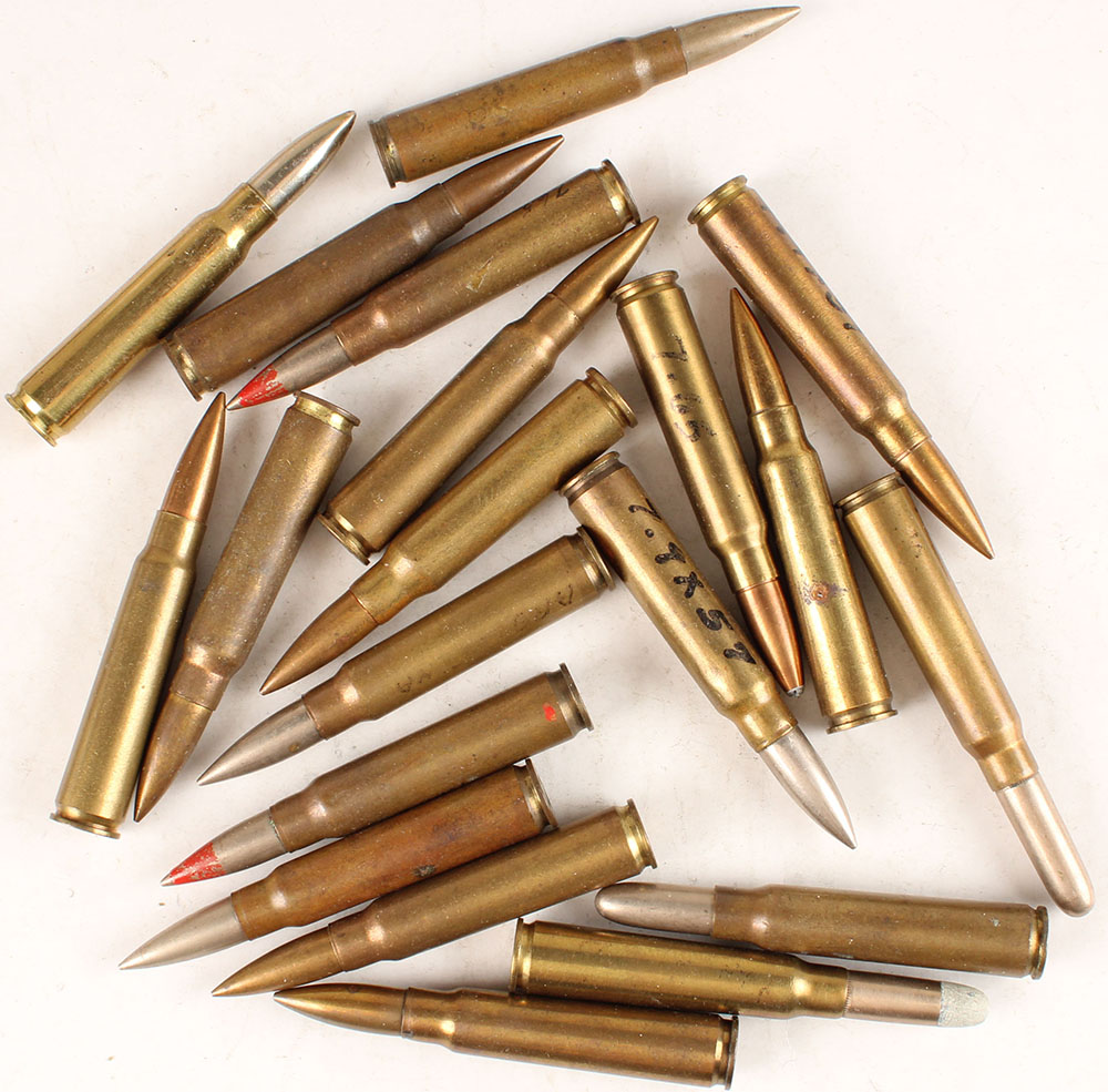 Lot of 20 7.65mm Mauser. (18) military--mostly from Argentina but a few from Turkey and one from Belgium. (2) commercial loadings from UMC and Norma. Grade: Very Good ++ - Value: 10 to 30
