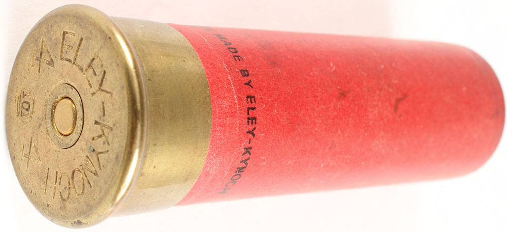 H/S= ''ELEY - KYNOCH 4ga'' 3 1/2'' OAL, loaded red paper case. Grade: Very Good + - Value: 10 to 50