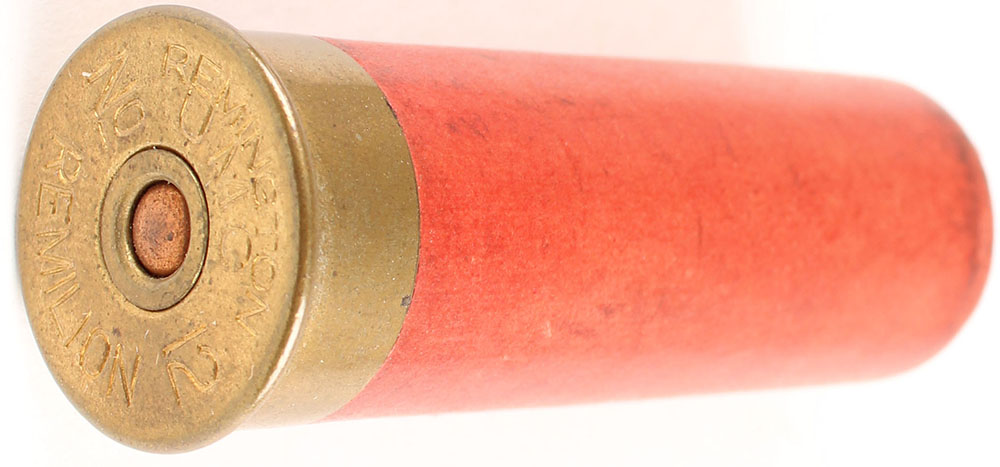 H/S= ''Remington U.M.C. No 12 Remington REMILION'', 2 3/8'' OAL, loaded red paper case. Grade: Very Good + - Value: 6 to 50