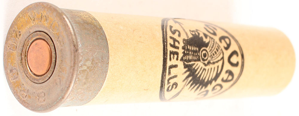 H/S= ''B.P.D-ROMA 20ga'' 2 3/4'' OAL, NPE, empty tan paper case. Grade: Very Good + - Value: 6 to 30