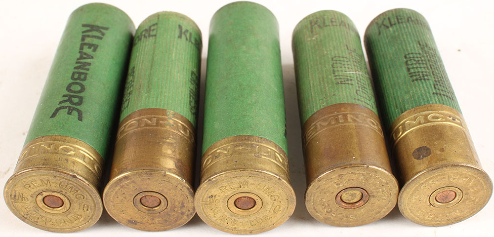 | Lot of 5 mixed H/S and gauges, loaded green paper cases. Grade:...