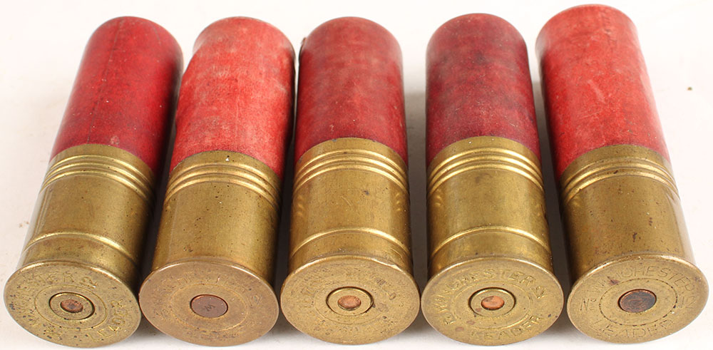 Lot of 5 H/S= ''Winchester Leader 12ga'' loaded red paper cases. Grade: Very Good ++ - Value: 4 to 50