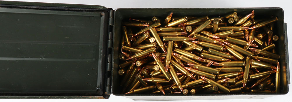 M2A1 .50 cal ammo can, Full of Approx 1000 Rds. Of Federal 5.56mm FMJ. Ammo is excellent. Grade: Excellent - Value: 500 to 1000