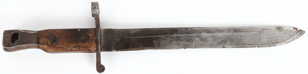Canadian, Pattern 1908 Ross rifle bayonet, right side of pommel Is marked ''ROSSRIFLECO.:, ''QUEBEC'', ''PATENTED1907'', is missing rear button & locking wedge to lock bayonet onto the bayonet lug. Grade: Very Good - Value: 40 to 100