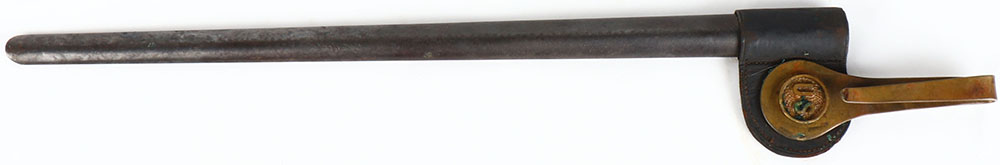 US, Springfield Trapdoor bayonet sheath & frog, sheath has rust & wear, leather is worn & is starting to crack. Grade: Very Good - Value: 20 to 60