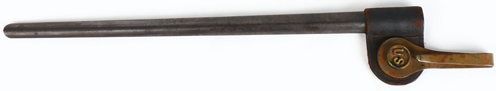 US, Springfield Trapdoor bayonet sheath & frog, sheath has rust & wear, leather is worn & is starting to crack. Grade: Very Good - Value: 20 to 60