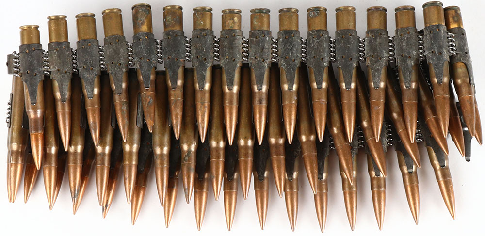 Lot of 49 Rds. Of surplus 30-06 on a Mg-34/42 belt, ammo is FMJ. Grade: Very Good ++ - Value: 40 to 80