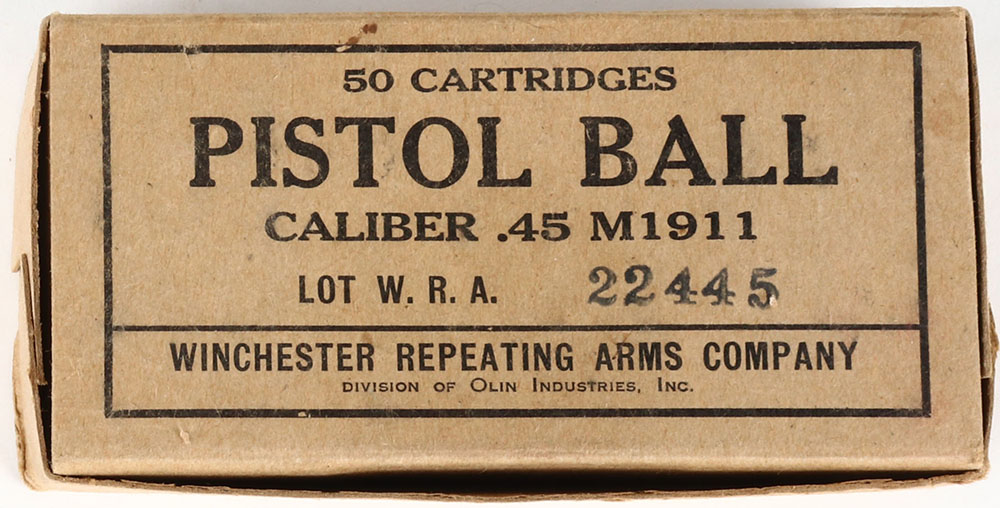 | Winchester, .45 M1911 Ball, Lot W.R.A. 22445, 1pc, Full, brown b...