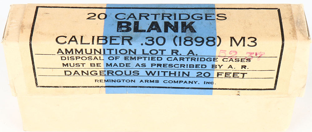 Remington, .30 1898 M3 Blanks, (30-40 Krag), Lot R.A. 5237, 2pc, Full, buff box with buff/blue label & black print, box is solid with light rub wear, ammo is ranges from very good to good. Grade: Very Good ++ - Value: 20 to 40